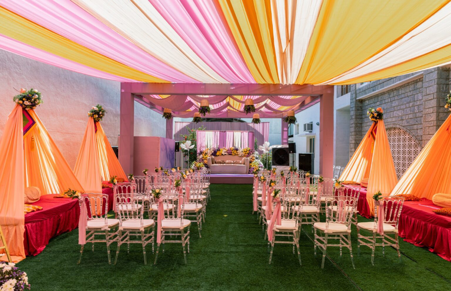 Catch the lively spirit of your turmeric ceremony with our similar decorations and innovative design concepts. We infect each element with the explosion of colors and tradition, creating a vibrant and joyful setting that reflects the cultural significance of this ritual before marriage.